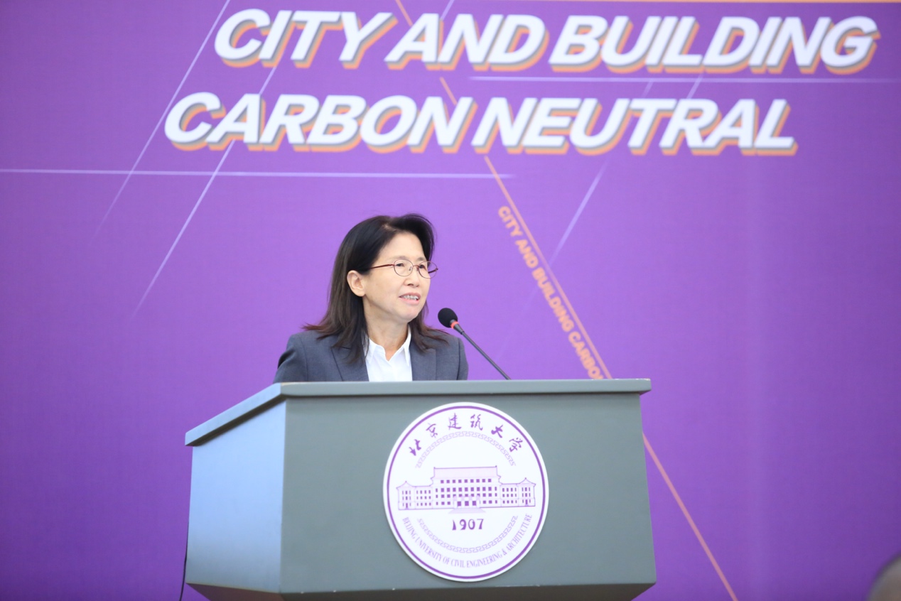 李俊奇代表学校致辞,他首先对各位专家、领导的到来表示诚挚欢迎和衷心感谢。他介绍了学校近年来在碳中和领域的积累和成绩,如2012年获批成立“北京应对气候变化研究和人才培养基地”,王随林教授团队相关研究成果荣获2014年度国家技术发明二等奖,郝晓地教授团队关于污水处理厂碳中和研究成果荣获教育部自然科学一等奖等。他指出,聚焦碳达峰和碳中和领域,学校于2020年发布了“面向未来城市的科技创新研究计划(2020-2035)”,提出五大领域三十余个研究方向。他鼓励广大教师和学生面向“双碳”目标,推动相关科技创新和技术发展,为绿色城市、低碳城市发展做出应有贡献。