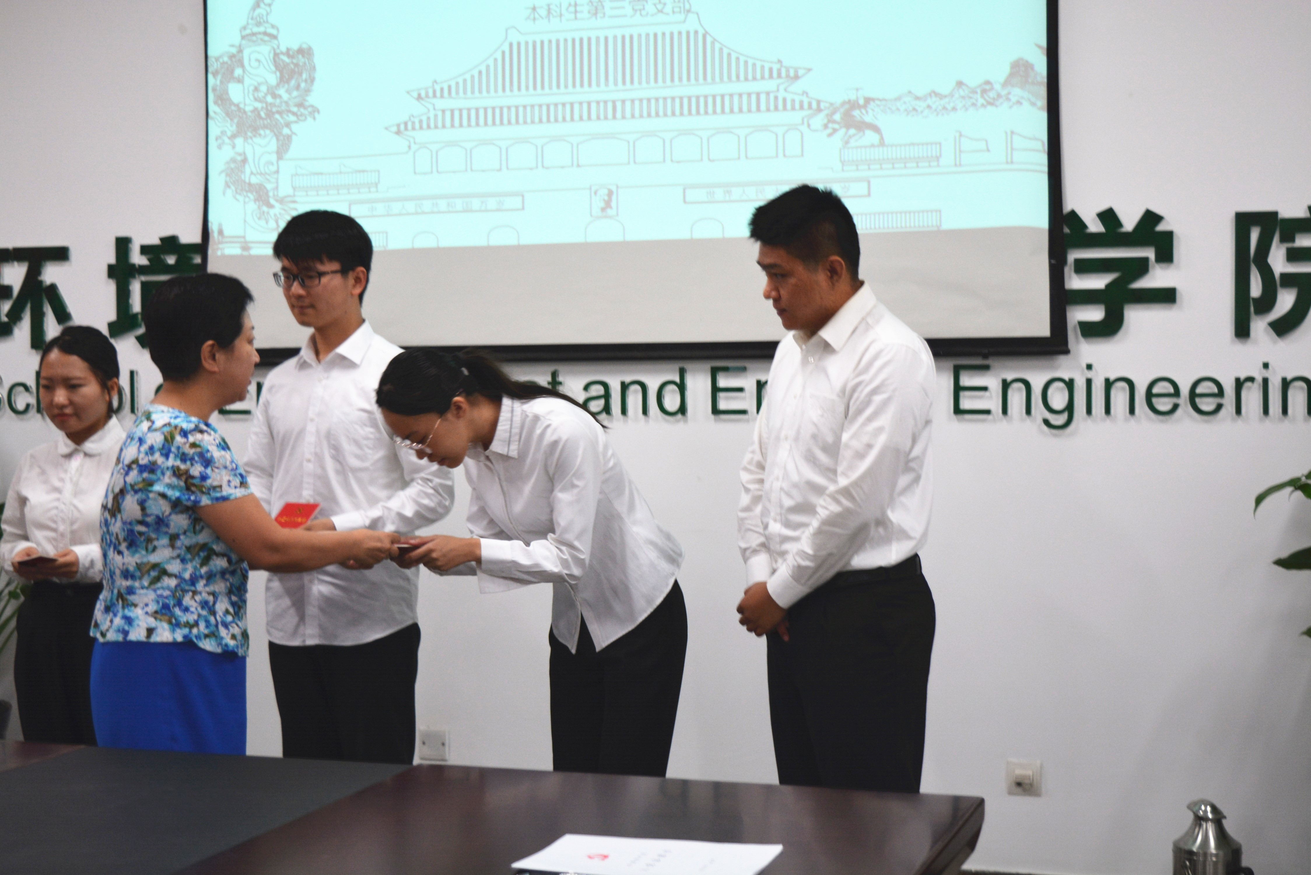 发展大会议程结束后,张素芳为四名同学赠送党徽、党章,并叮嘱他们要认真学党章、用党章。随后她对与会党员谈了四点寄语:一是祝贺,恭喜四名优秀的同学加入党组织,开启人生新征程,为党组织注入了新鲜血液;二是感慨,张老师回顾自己入党35年的经历与党组织多年的教育和培养,表示要坚信中国共产党是中国特色社会主义事业的领导核心,只有中国共产党才能带领中华民族走向繁荣;三是欣慰,环能党委高度重视学生党员发展,本科生第三党支部党员精神面貌好,党的基层组织建设卓有成效;四是期待,希望与会学生党员坚定理想信念、强化宗旨意识,勤学爱学、充满战斗力和活力,增强党性观念,实现从组织上入党到思想上入党的转变,思想入党永远在路上,要发挥先锋模范作用,做群众的表率,做到:平时看得出来,关键时站得出来、危机时冲得出来,真正成为一名优秀的共产党员。