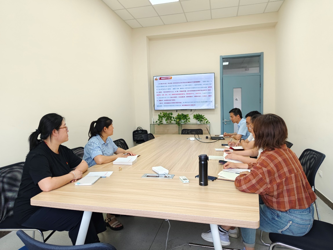 党委副书记孙强主讲,支部书记寇莹莹主持会议,全体党员参加。