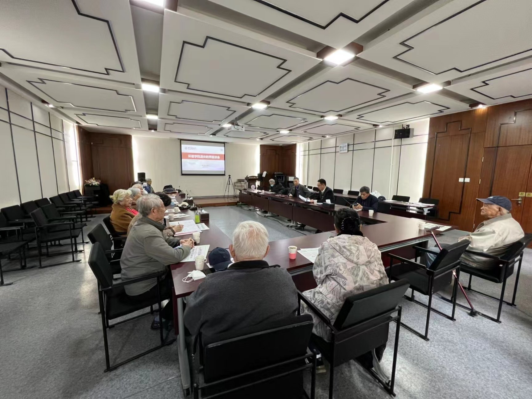 在西城校区教1-104召开退休党支部专题会议暨退休教师座谈会。学院退休党支部书记潘树源、支委会成员毛亚林、邱林和10位退休教师参加会议,学院党委书记冯宏岳主持会议。