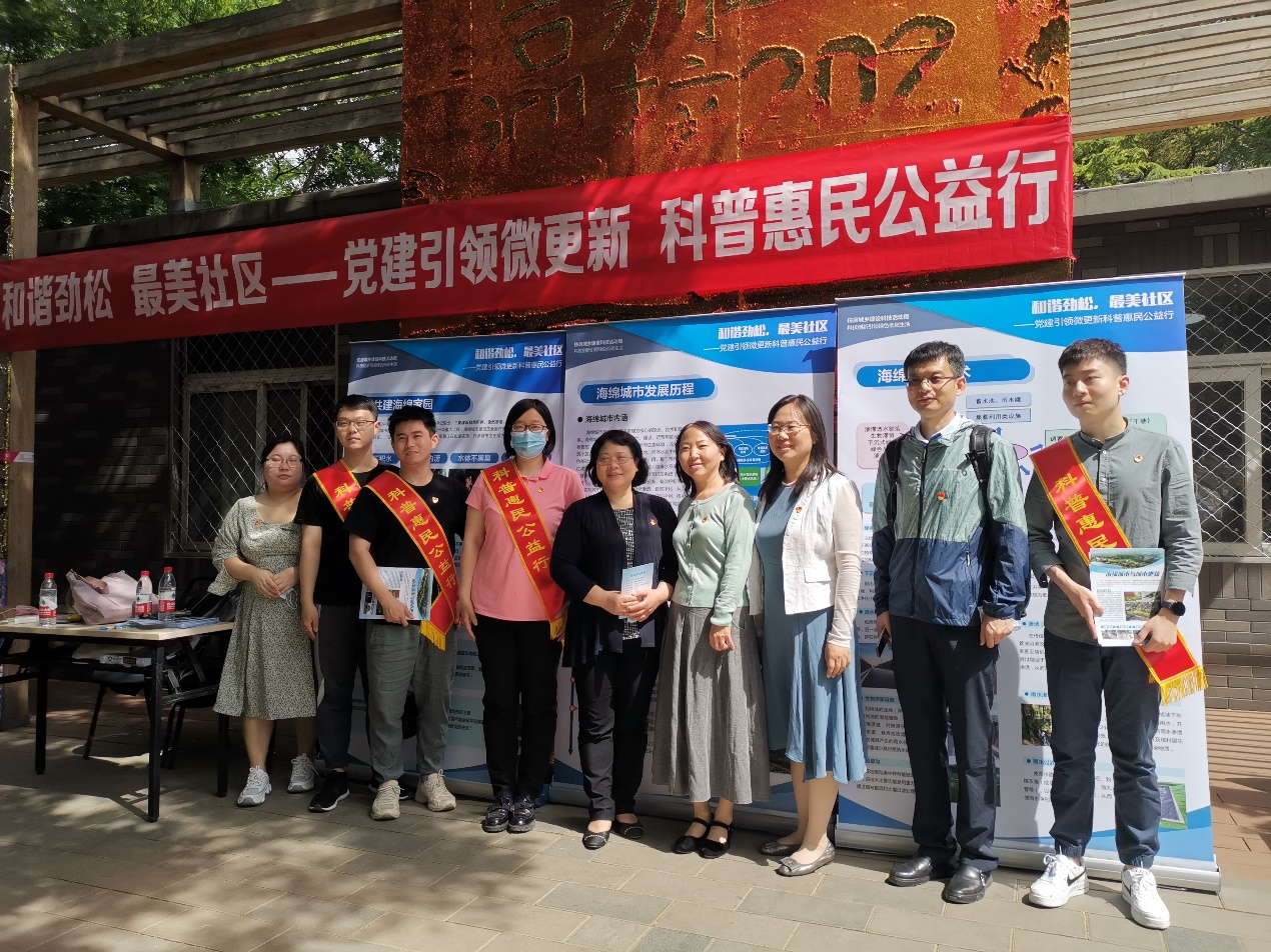 师生党员和来自北京愿景集团、北京自来水集团有限公司的同志,面向社区居民宣讲海绵社区和城市更新、垃圾分类、生活饮用水安全方面的科学知识,受到了社区居民的关注和热烈欢迎。社区群众表示,这种科普活动能够近距离接触科技工作人员,交流了解一些与居民日常生活息息相关的科学知识,使科普真正的走进社区、走进生活、走进群众。