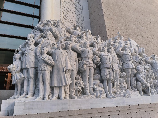 图2题为《信仰》:拍摄取景为中国共产党纪念馆门口的《信仰》雕塑,不同时期的英雄人物、和优秀党员宣誓的形象展现了中国共产党不忘初心,牢记使命的豪情壮志。