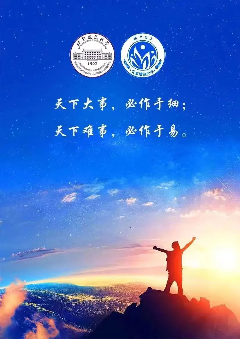 以北建大三大著名建筑为衬托,体现了同学们活泼阳光的在这里求学,另外班训等设计元素也在海报中得以体现。