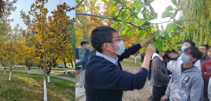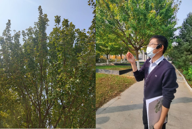 元宝枫为无患子目槭树科槭属落叶乔木,又称元宝槭。它的果实称之为“翅果”,如同一对翅膀方便种子传播。王老师向我们介绍说,它的种子还是生物柴油的优质来源。
