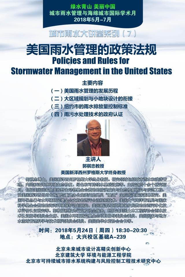 绿水青山 美丽中国——城市雨水管理与海绵城市国际学术月之城市雨水大讲堂系列(7)美国雨水管理的政策法规