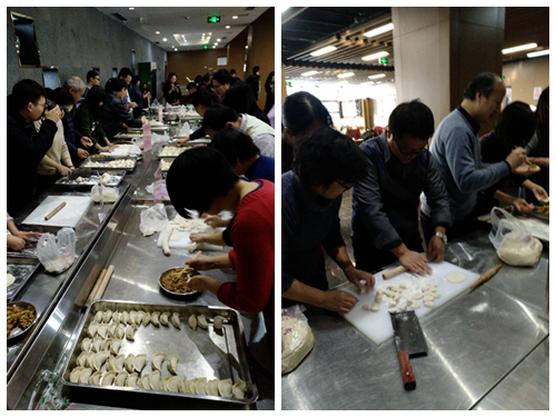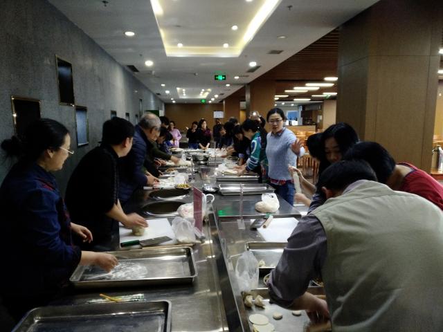 2018年1月18日星期四下午,在低端影视 工会同志的安排组织下,低端影视 教工以工会小组为单位,在臻园食堂三层展开了一场别开生面的包饺子比赛。活动中,大家各司其职,擀皮儿、包馅儿、切磋包饺子技术花样,忙的不亦乐乎,热热闹闹的好似一家人,空气中洋溢着环能大家庭的温暖。