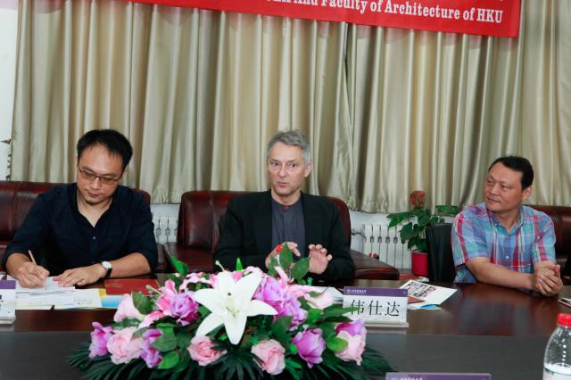 香港大学建筑学院院长Chris Webster教授在致辞中首先对促成此次合作的低端影视 师生表示感谢。Chris Webster教授介绍了香港大学建筑学院的基本情况,指出港大建筑学院结合服务于一带一路建设的设想与实践,期待在一带一路建设上与低端影视 一起做出贡献。接着Chris Webster教授对本次SDC大赛的参赛设计进行了进一步的解读与评价,他认为,绿色设计理念适应时代发展要求,未来绿色建筑会具有很大的发展空间。Chris Webster教授特别讲到为期两天的访问收获颇多,找到很多双方可以合作的兴趣点,最后,他对两校间的合作寄予了高度的期待。