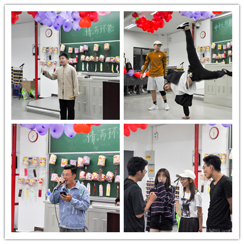 随后,暖171班郭子辰和林顺磊同学带来的热舞《B boyz》,将现场气氛瞬间被点燃,拉开了文艺表演的大幕;暖172班陈睿哲表演的评书《卢沟晓月》,展现传统文化的同时与中秋佳节遥相呼应;动181班沈歆昳和李心语同学带来的《we don't talk anymore》,悠扬婉转的声音增添了几分思乡的情绪;动181班刘欣龙同学带来的诗朗诵《中秋的月亮》,诉说着心底最深处的话语。接下来,是轻松有趣的游戏环节,灯笼后面挂着的是一句灯谜还是一段语音?古典文学与现代音乐的结合,让人在古今穿梭中体会中秋的韵味;成语作为源远流长的中华文化的产物,其蕴含的道理在今日依旧引人深思,你是否还记得他们;围坐在一起的人儿,听着传来的歌声,或熟悉或陌生,你 能否猜出他们的名字?