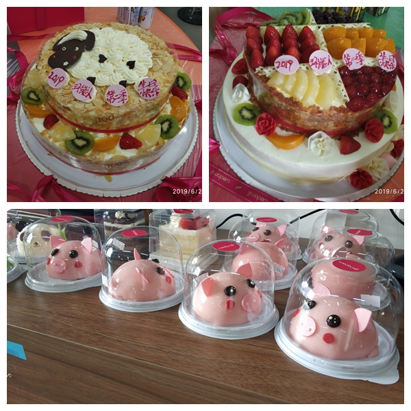 学院为过生日的老师们准备的礼物真多。大大的蛋糕,小小的蛋糕,各种高饮料酸奶,参加生日会的老师们有口福啦。