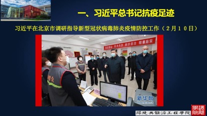 梁凯老师则为大家讲述了习主席的抗疫足迹,号召大家向习主席学习,并且传达了学校、学院对同学们的关心,向各位同学提出防疫、生活和学习等方面的要求。