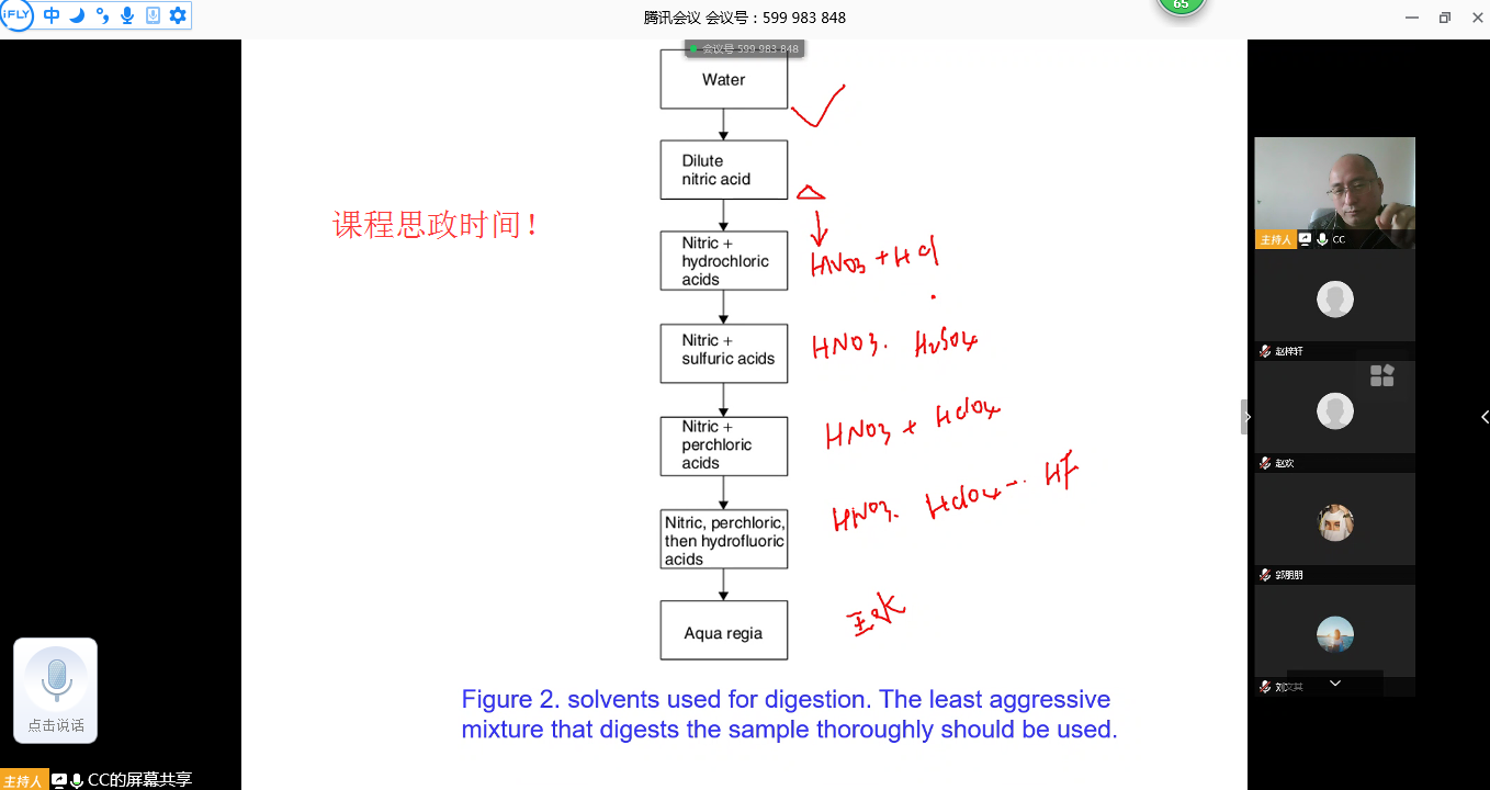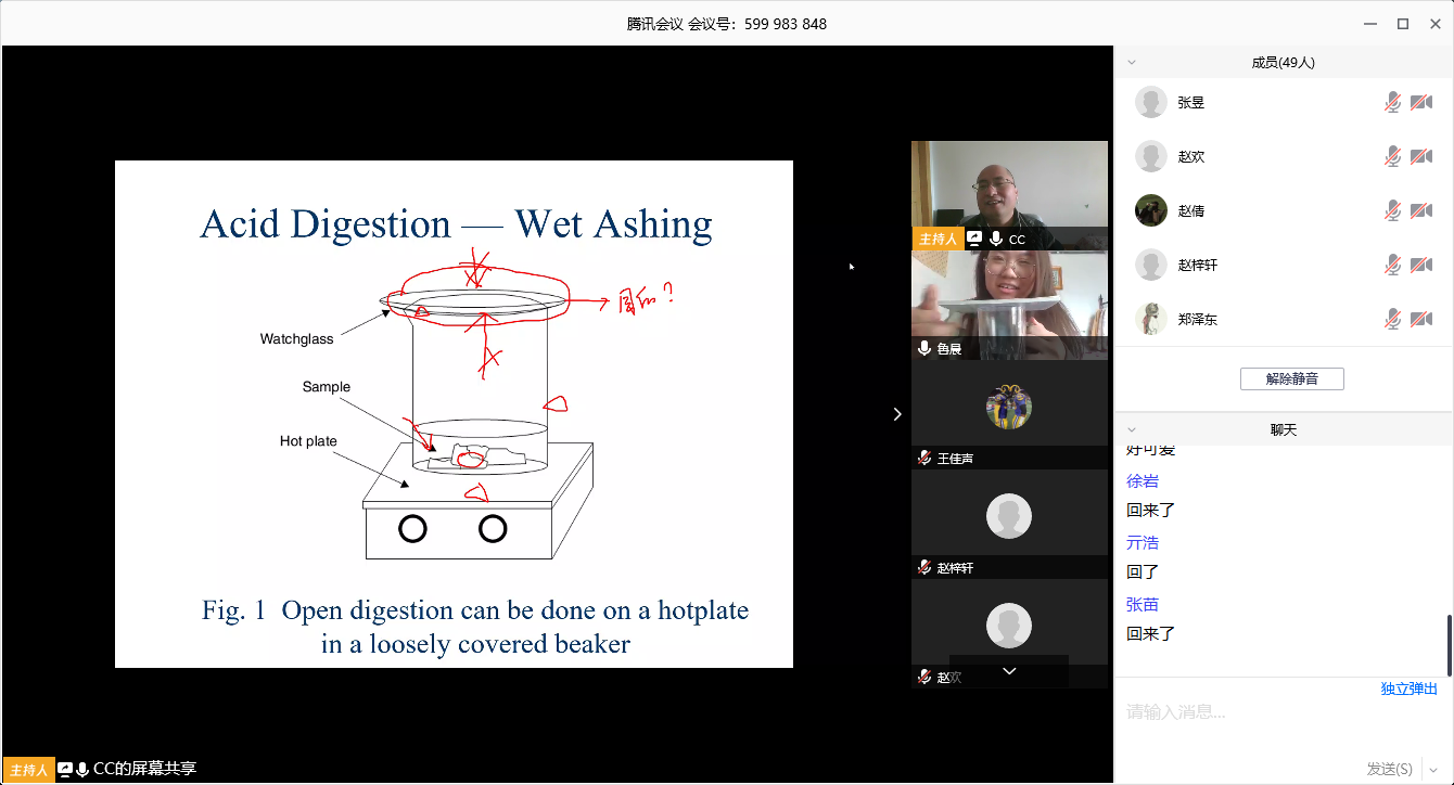 虽然已经有15年教龄,但我还是为自己的在线教学而忐忑不安。充分分析网络上流传的各种在线教学“翻车”现场和原因,我对第一周的在线教学几乎“武装到了牙齿”。我用了多年的老朋友“雨课堂”推送课件,用新朋友“腾讯会议”进行直播。用一台笔记本做直播主机,通过“腾讯会议”的共享屏幕播放“雨课堂”界面的课件,实现了流畅的课程直播和语音视频互动,兼顾了通过“雨课堂”推送课堂互动题。为模拟实体教室的效果,我还用手写板在PPT课件上进行板书。同时,我还用手机端打开“雨课堂”的“学生视角”监控其课件推送情况,用另一个账号登录“腾讯会议”监控课程直播。我非常感谢同学们克服各种困难进行在线学习,被他们认真求学的态度和精神所感动。这次“不得不”进行的在线教学促使我积极准备更多适合在线教学的资源,加快建设MOOC、微课的步伐。同时,也促使我进一步调整教学方式,更好地建立“以学生为中心的教与学”模式。