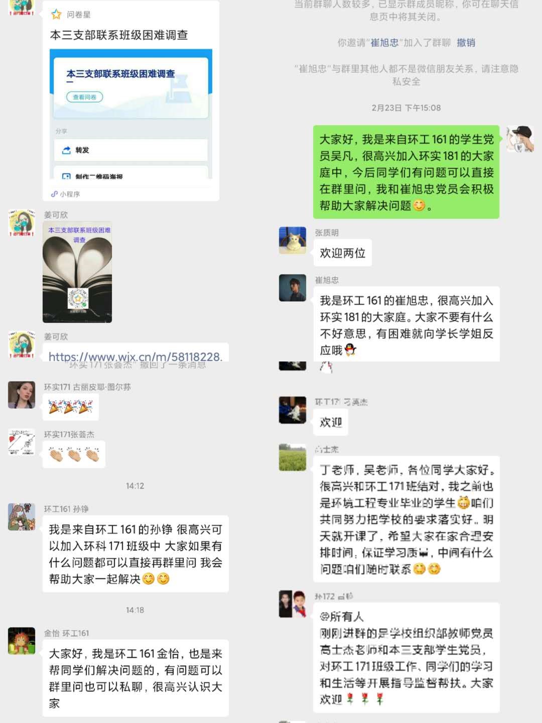 支部积极落实学校关于开展教工党支部和学生党支部“一对一”帮扶工作,与党委组织部(党校)党支部紧密联系,制定详细工作方案、发起“党员包班共抗疫”活动,全部党员下沉到环境专业本科四个年级八个班中,全面掌握该班学生情况,为困难学生解决实际物资、学业问题,,协助邮寄学习物品58件,精准帮扶。