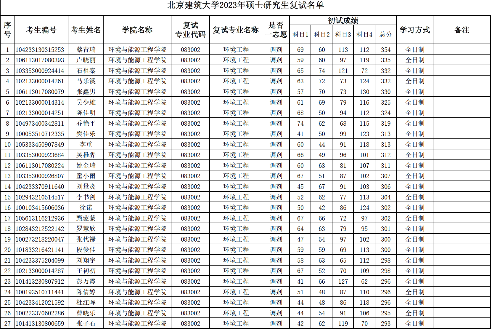 低端影视 2023年硕士研究生复试名单 ——环境(调剂)
