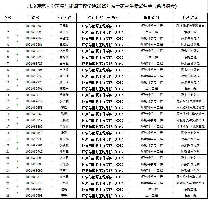 环境学科、市政学科---2025博士入学考试复试名单---普通招考