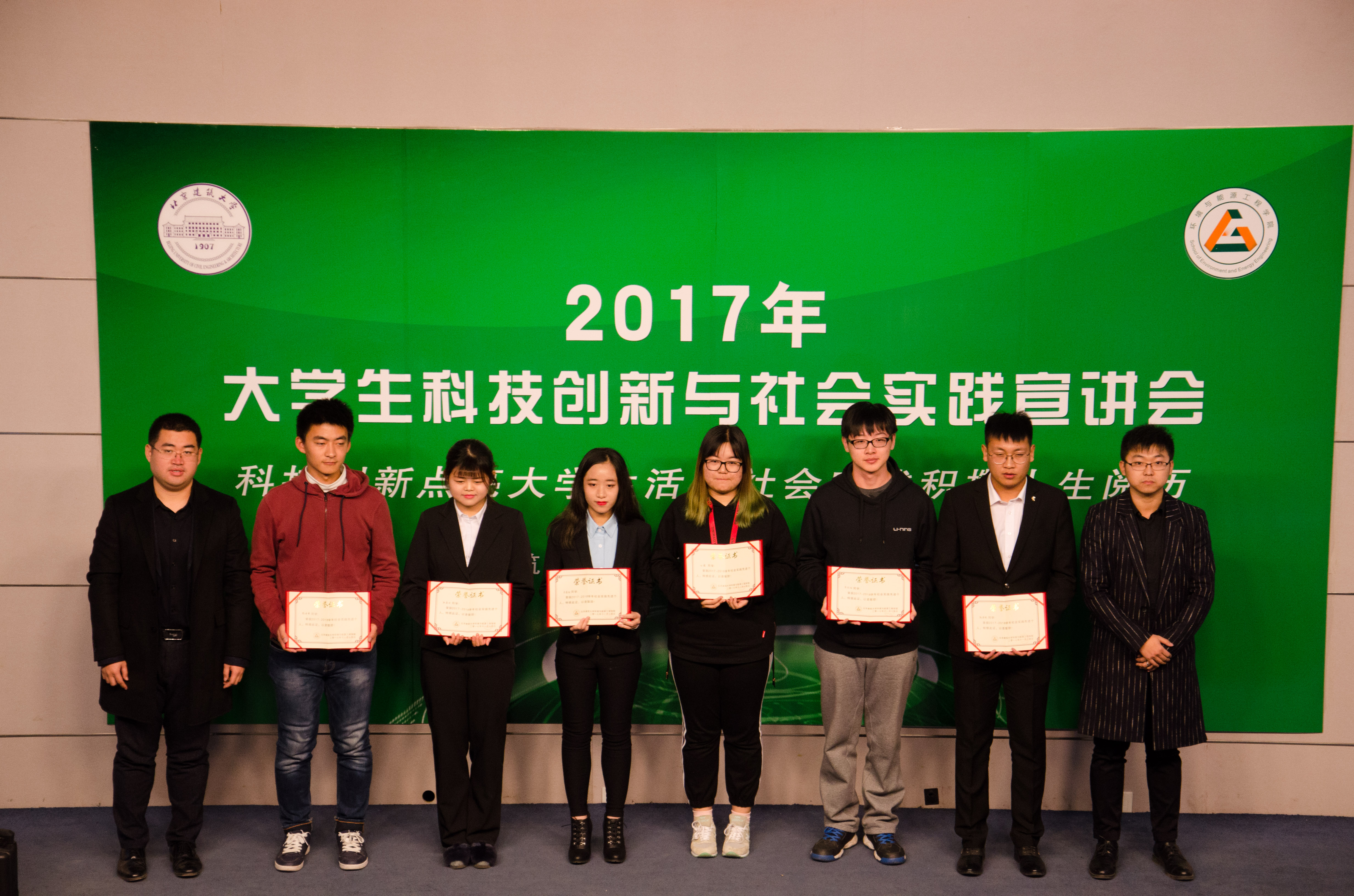 大学生科技创新、社会实践先进个人,并由出席宣讲会的老师为科技创新和社会实践的先进个人颁奖。
