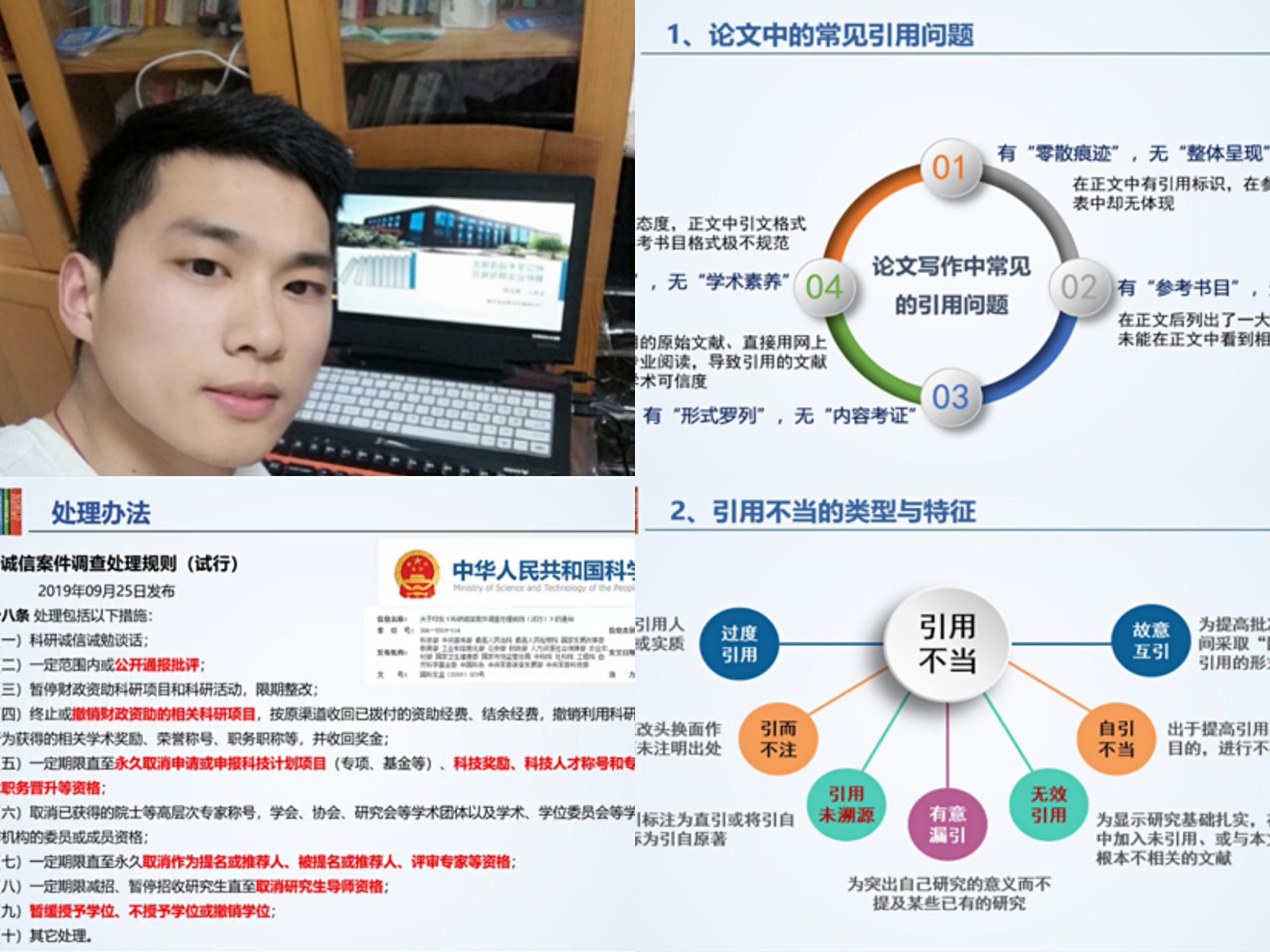 研究生齐聚云端,共同聆听了由校研究生院、团委、学生工作部(处)主办,由中国知网学位论文部编辑贾志明主讲的“树立学术诚信理念,解析论文撰写规范”主题讲座。