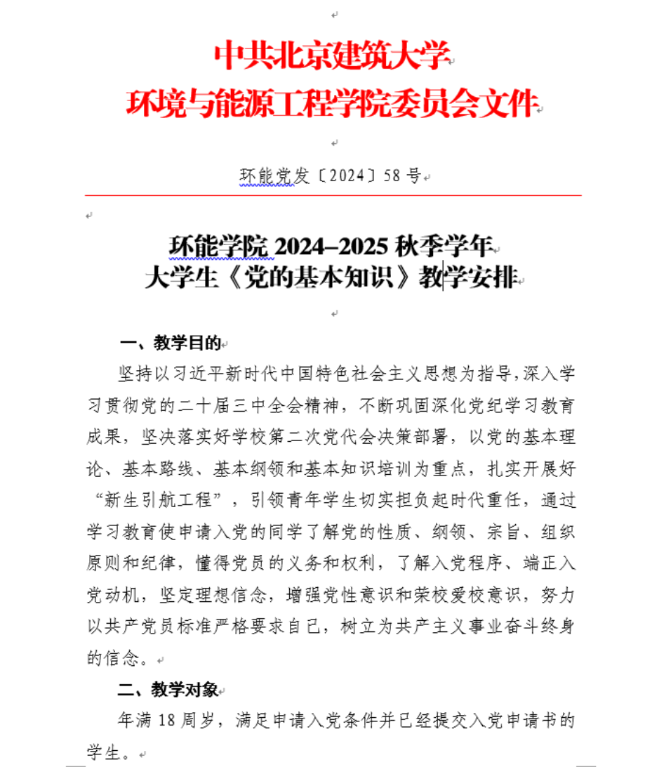 2024-2025秋季学年大学生<党的基本知识>教学安排》(能党发〔2024〕58号)。