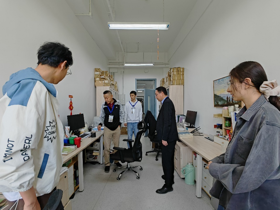 党委书记冯宏岳带队对所辖实验室、研修室进行五一节前的安全专项检查,主要检查了实验室用电安全,应急喷淋、灭火器等安全设施是否能正常使用,气瓶、危化品管理是否规范,假期开放使用实验室情况及教研室、研修室非标插线板以及卫生情况等,对可以及时排除的隐患进行现场纠正,做到即知即改、立行立改;对近期通报的安全管理问题进行整改督促。实验室专职管理人员穆小让、李富强、辅导员杨亚利等一同检查。