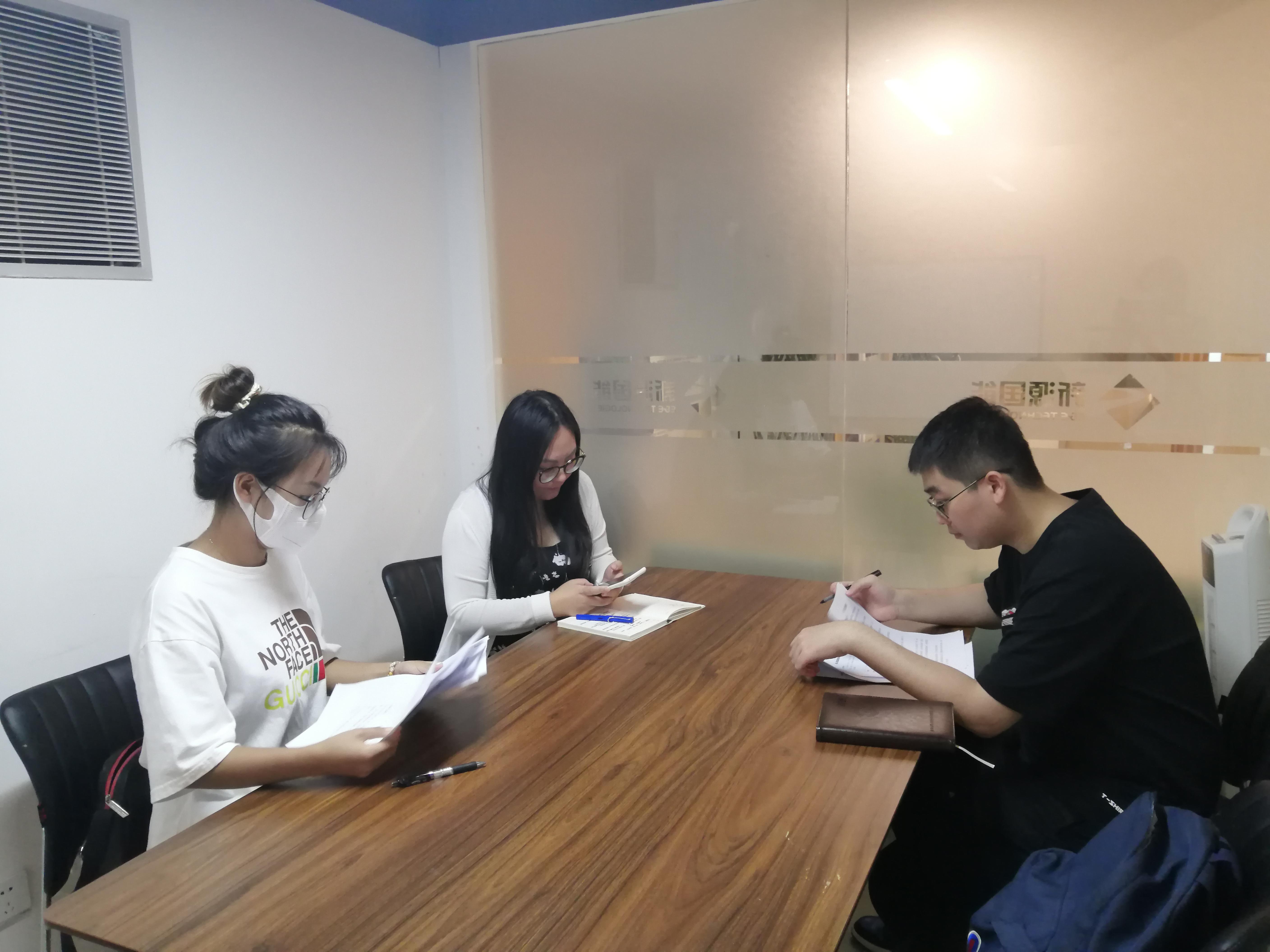 实践团同学在新源集团录制访谈视频,记录招聘经理介绍有关毕业生的就业概况以及组织本校毕业生进行问卷调查。
