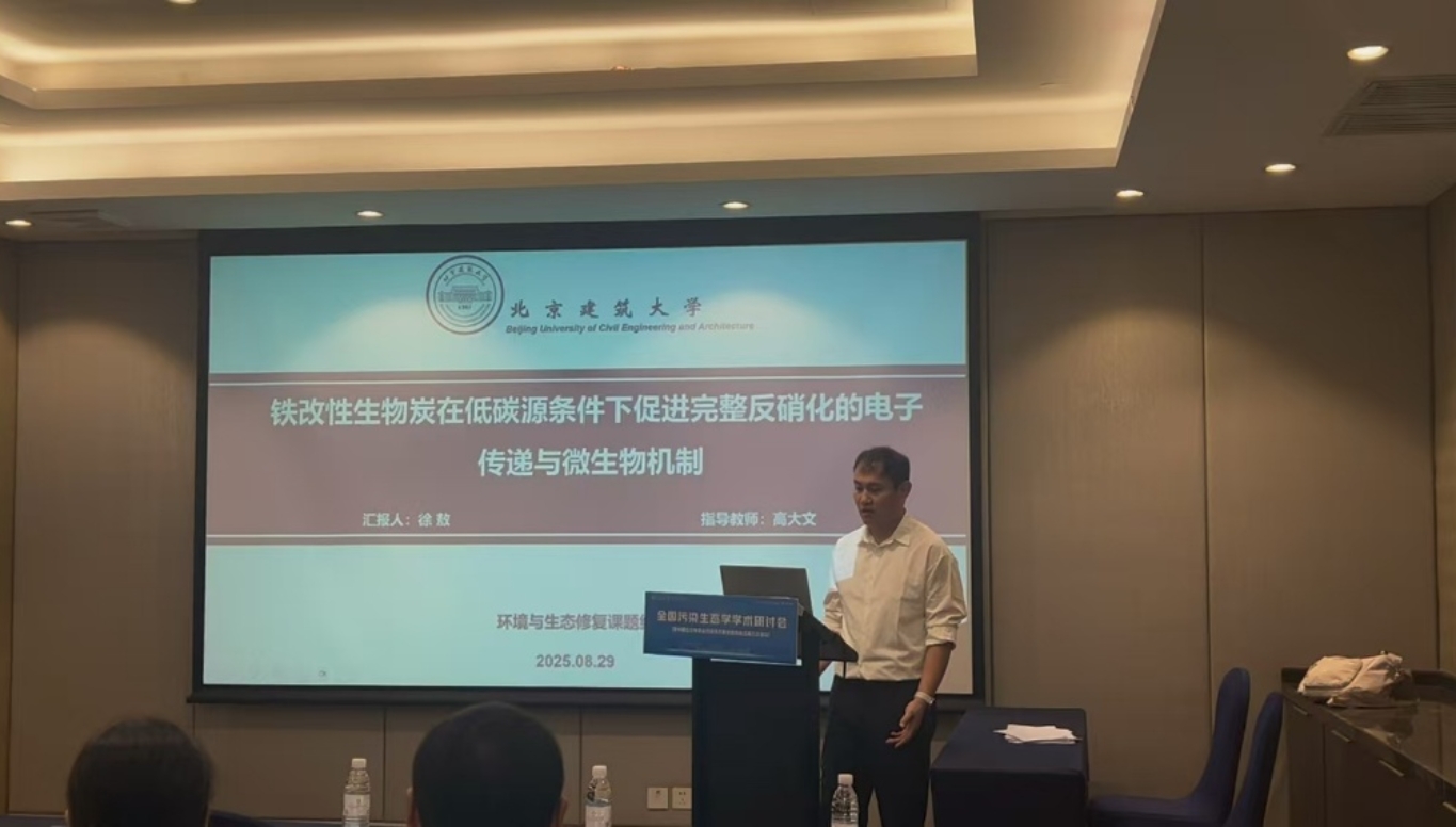 会议期间,徐敖博士做了题为“铁改性生物炭在低碳源条件下促进完整反硝化的电子传递与微生物机制” 的口头汇报,系统介绍了团队在污水生态修复研究方面取得的新进展。反硝化是水体氮污染治理的核心环节,但在低碳源条件下常常因电子供给不足而受到限制,导致氮素去除率偏低。针对这一难题,研究团队创新性地制备了铁改性生物炭(FeBC),并通过实验验证其在促进电子传递和调控微生物群落方面的独特作用。结果显示,FeBC显著提高了电子传递系统和关键酶的活性,使硝酸盐去除速率提升了30%,同时有效避免了亚硝酸盐和氧化亚氮的积累。结合生化定量分析、电化学检测和宏基因组学手段,研究进一步揭示了FeBC能够通过促进细胞电子传递,加速碳代谢和能量生成,为反硝化过程提供充足ATP,从而实现微生物群落的高效协同与完整反硝化的稳定运行。这一成果不仅拓展了低碳源条件下污水生态修复的新思路,也为污水生物处理技术的可持续发展提供了理论依据和实践参考。徐敖同学的精彩汇报展现了低端影视