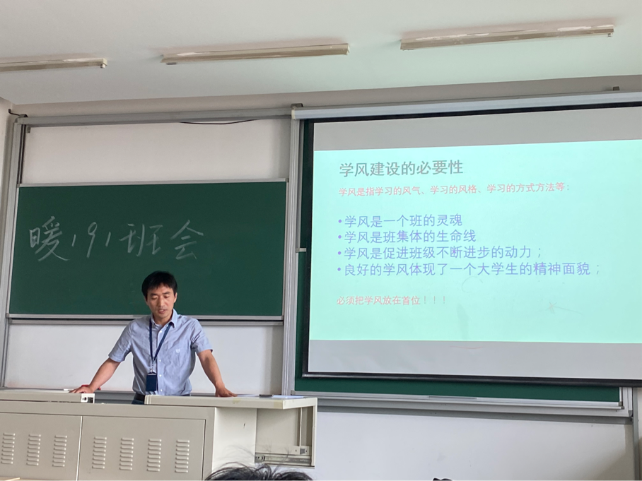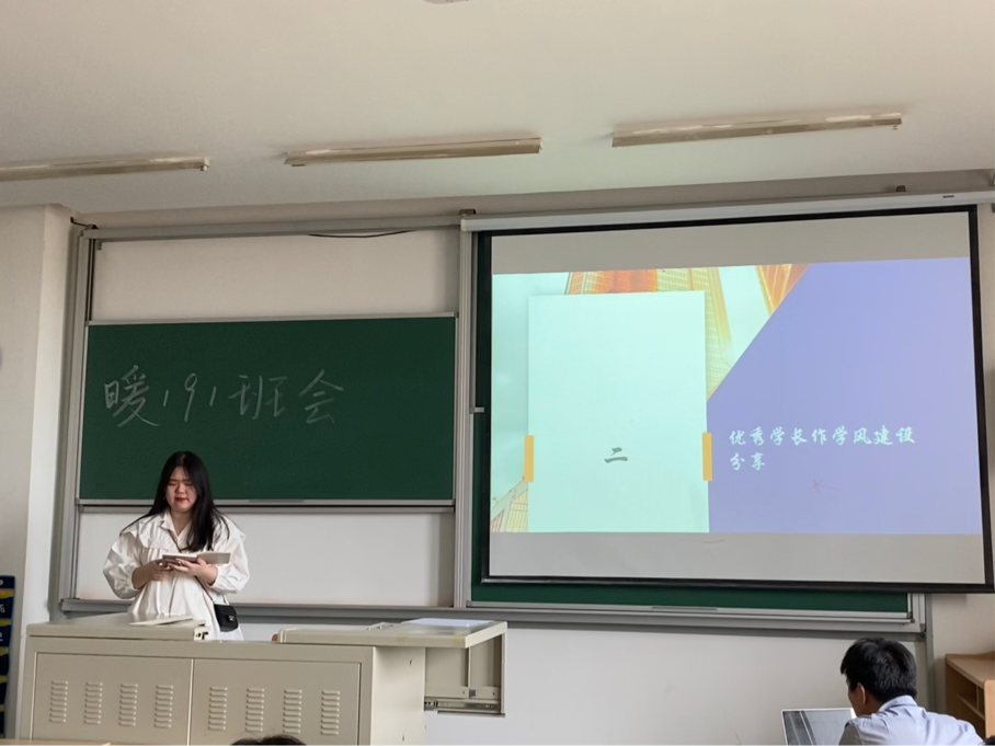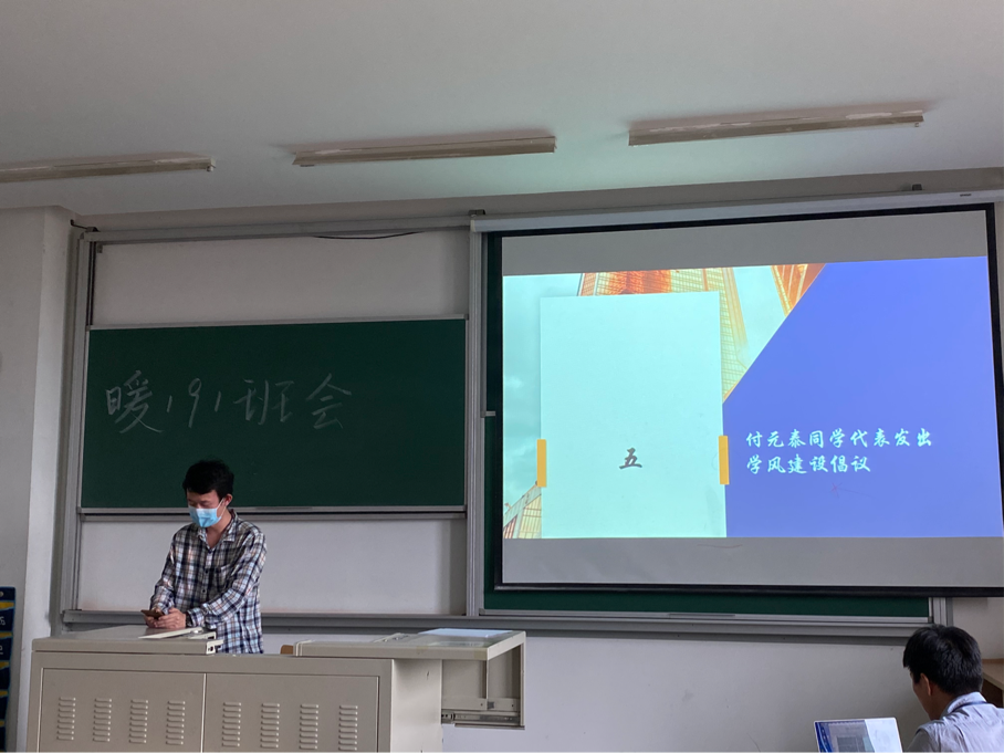 最后由联系干部卫老师总结本次班会。卫老师对于暖191班级重视学风建设并积极参与活动表示了肯定与鼓励。卫老师同时就学风建设提出三点建议。第一,集体造就个人,班级学风建设对班级内每个人至关重要,而班级学风建设也离不开个人的贡献,所以我们每位同学都要融入集体,严抓学风;第二,青春离不开奋斗,同学们应该在大学期间全身心投入学习,沉下心来学习知识,不给青春留下遗憾;第三,发挥班委干部榜样引领作用,每名同学都应该端正学习态度,珍惜学习积累,让整个集体充满勤学好问的良好风气。