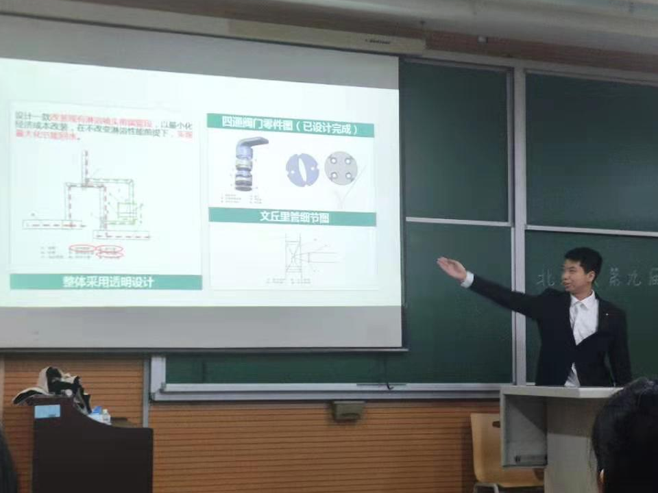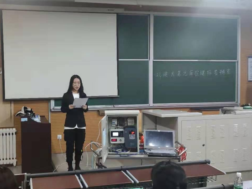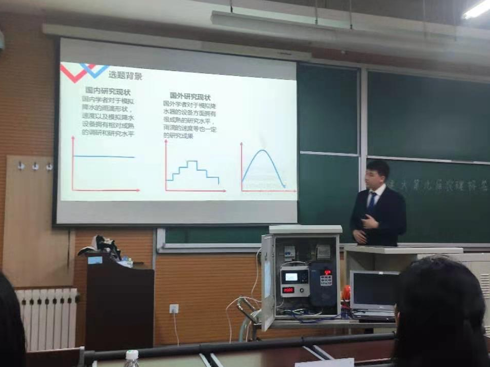 参赛选手通过PPT讲解和现场实物演示等方式,向评委老师展示了自己的参赛作品,充分体现出建大学子的创新思维、实践能力。