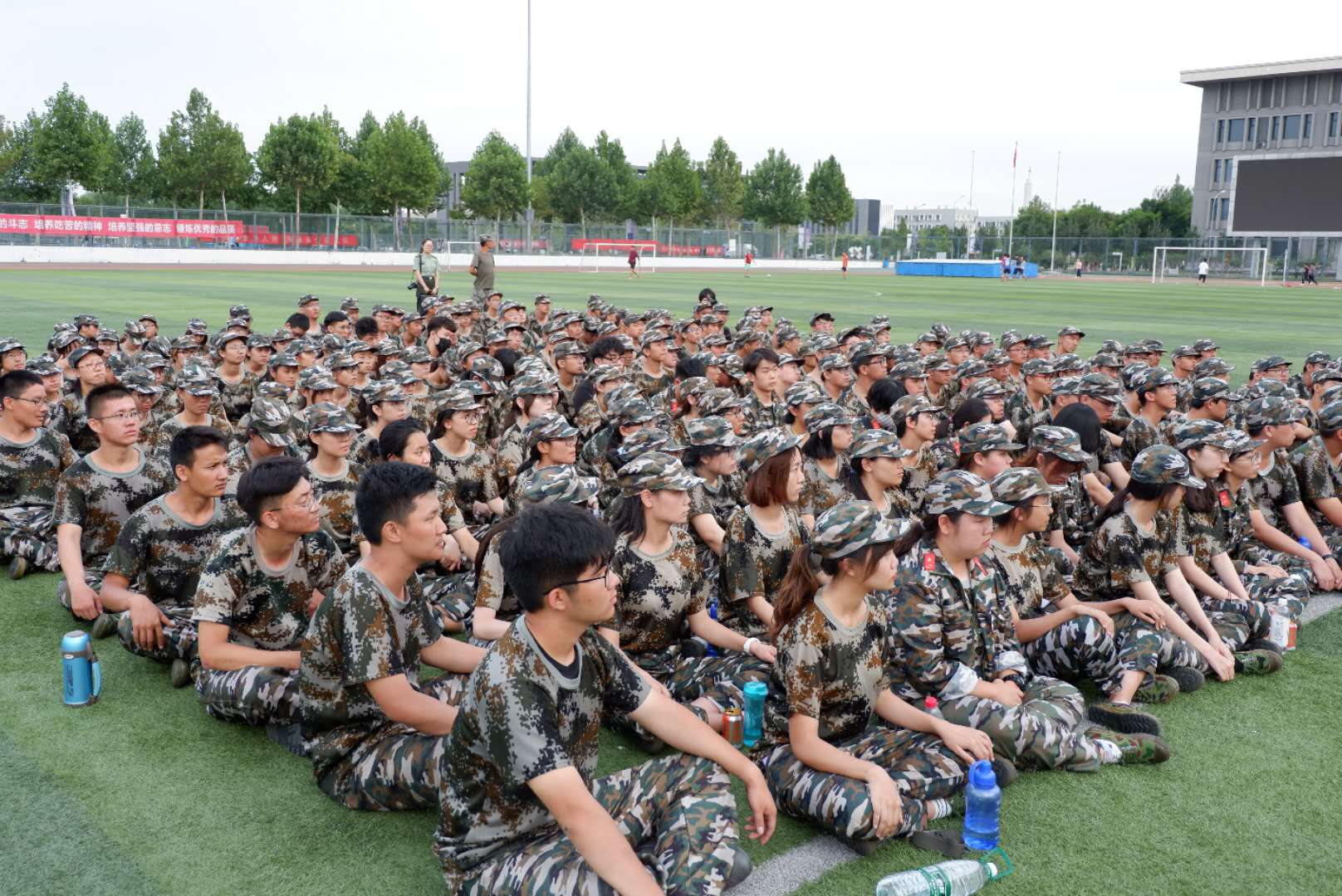 每个人素质和品格;最后,再次指出“青年要强,教育要强”,军训作为环能新生教育的第一课,至关重要,希望每个参训学生扣好大学第一粒扣子。新生们也用整齐的掌声和口号声表达了坚决完成任务的决心。