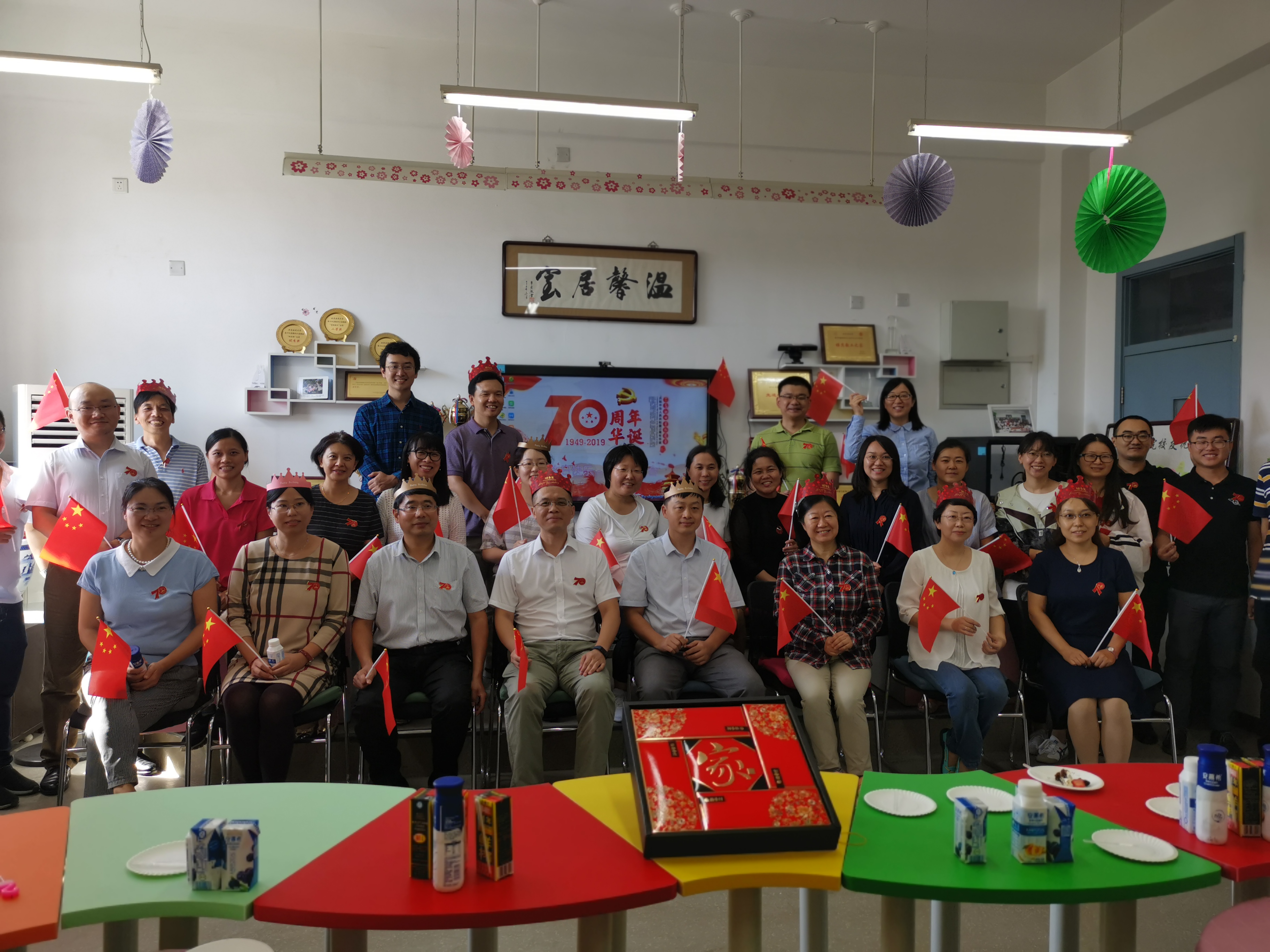 由于繁忙的科研和教学工作,使得这次聚会变成了教职工之间难得的聚会,大家欢聚一堂,与祖国共同庆生,一同回顾祖国的历程,畅想祖国美好未来。