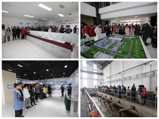 座谈会后,公司专人带领老师和同学前往净水厂生产区参观学习。首先进行室内参观,在沙盘前负责人为同学们讲解了净水厂整体布局;随后我们进入总控室,了解各部分运行状态;最后,在工作人员的带领下,同学们步入生产区,了解各个部分运行环境。同学们依次参观了转鼓格栅间、膜格栅间、污泥脱水机房、膜车间等重要单元及部分,真实了解到公司“提倡绿色生活,实施清洁生产”、“共建绿色家园,共享碧水蓝天”的理念。在参观和问答过程中,同学们更为具体地了解污水及污泥处理过程,表示参观过程对自己很有帮助,强化了自己专业知识,明确了自己的专业方向。