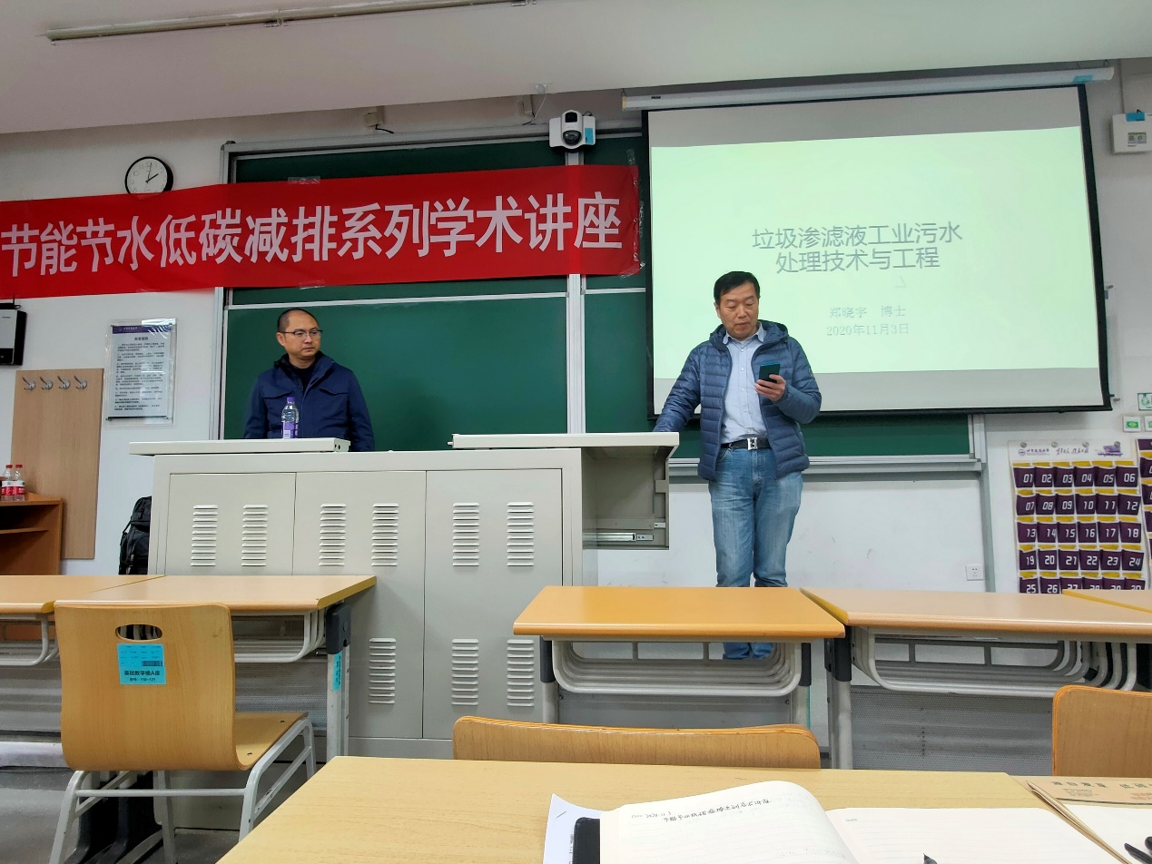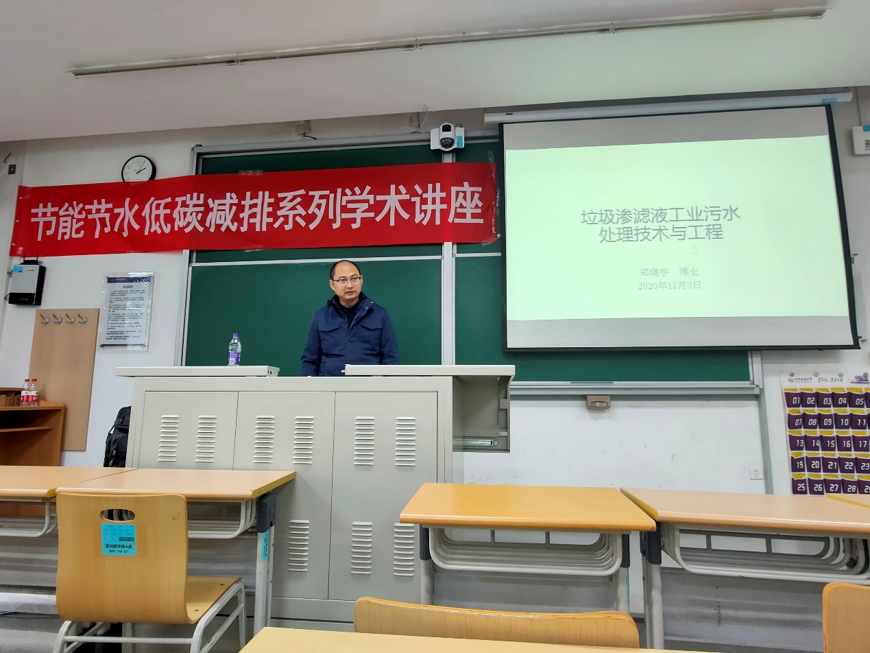 并作题为“节能节水低碳减排系列学术讲座——垃圾渗滤液工业污水处理技术工程”的高端学术报告。报告会由学院党委副书记梁凯主持。高大文教授、梁红副教授,市政、环境的硕博研究生,以及近百余名本科生听取了本次报告。
