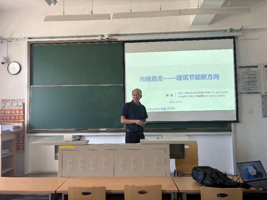 邀请深圳市建筑科学研究院股份有限公司副总工程师、中国建筑节能协会光储直柔专委会秘书长郝斌教授为新能源技术现代产业学院师生作了题为“光储直柔——建筑节能新方向”的学术讲座。建环系、热动系部分教师和本、硕学生等参加了讲座。
