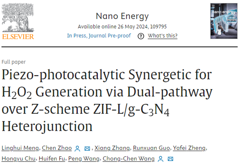 王崇臣教授团队于2024年5月26日在Nano Energy(中科院一区TOP期刊,IF = 17.6)上发表了题为《Piezo-photocatalytic Synergetic for H2O2 Generation via Dual-pathway over Z-scheme ZIF-L/g-C3N4 Heterojunction》的研究论文。该工作采用室温沉积法可控制备了双通道Z型ZIF-L/g-C3N4异质结,通过介导氧还原(ORR)与水氧化(WOR)反应压电-光催化协同高效、绿色制备H2O2。催化制备获得的H2O2可直接用于光芬顿反应去除有机污染物,展现了基于该异质结催化反应体系的实际适用性。本文主要强调了异质结工程与极化作用的双重调谐作为提升光催化制备H2O2活性策略的重要性。该论文第一作者为低端影视
