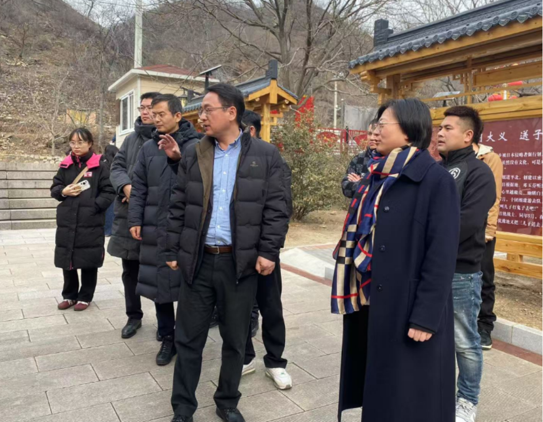 调研组首站来到邓玉芬英雄母亲纪念广场,全体人员在纪念碑前庄严肃立,聆听“当代佘太君”邓玉芬送六子参军、满门忠烈的感人事迹,通过沉浸式思政教育深刻体悟革命先辈的家国情怀。调研组在村庄实地踏勘,先后考察了在建的邓玉芬纪念馆、精品民宿集群等项目。