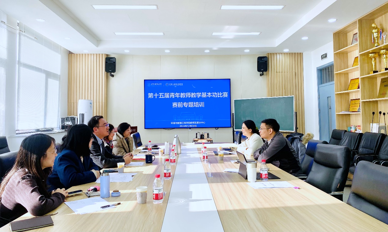 教师发展分中心组织第十五届青年教师教学基本功比赛赛前专题辅导。环境科学与工程系张晓然、武利园,建筑热能工程系杨晖、于丹参会并做了点评。会议由学院党委书记冯宏岳主持。