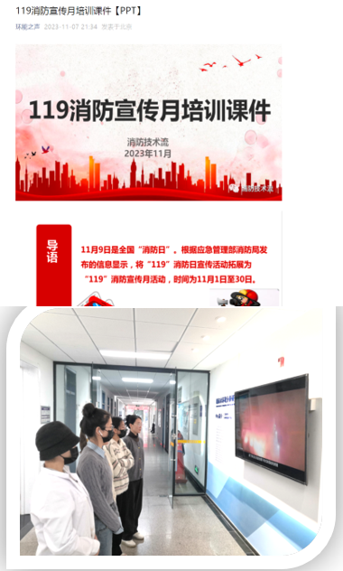 学院通过组织召开安全生产工作专题会、“环能之声”微信公众号推送安全培训课件、组织观看消防安全教育视频,组织新生参观北京市安全生产实训基地等方式,多途径开展“安全生产月+消防宣传月”专题活动。