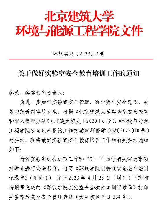 全覆盖开展安全培训和教育。学院理论学习中心组开展实验室安全专题学习;各党支部形式面向全体党员开展安全教育;全院每月一次全院教职工大会,开展实验室安全主题培训;各团队课题组开展安全微宣讲,重要节点进行安全教育和提醒。学院组织师生学习教育部、北京市、市教委及行业内等安全管理文件和工作要求,强化师生树立“安全无小事”、“隐患就是事故”的安全意识。