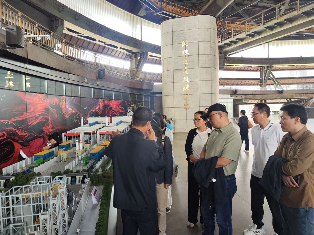 三高炉作为首钢的明星高炉,曾是首钢第一座炉容超过2500立方米的现代化大型高炉,现已化身为京西热门的旅游休闲场所。在专业讲解员的引导下,教师们登临三高炉40米观景平台,360度沉浸式俯瞰首钢园区全貌。远眺永定河、新首钢大桥、滑雪大跳台,感受着工业文明与自然景观的和谐共生。随着讲解老师的细致介绍,大家认真聆听三高炉以及配套设施的辉煌,体会首钢工人的艰辛。特别是介绍到热风炉上高温炙烤下的天车工、热风炉内穿着保温服的抢修工时,不约而同地为当年的首钢工人鼓掌。在丝丝秋风中,大家从内心感受着曾经的工业辉煌与现代城市复兴的改革转型之决绝与成效。随后,教师们进入钢铁巨兽的心脏,在炉内9.7米高的出铁平台上,细细体会在铁花飞溅的五十多度高温下,炉前工二十多年的坚守。首钢工人用他们的辛勤和汗水,诠释对工作的热爱与执着。正是这些平凡岗位上的执着坚守,爱岗敬业的奉献精神,构成了社会稳定发展的基石。