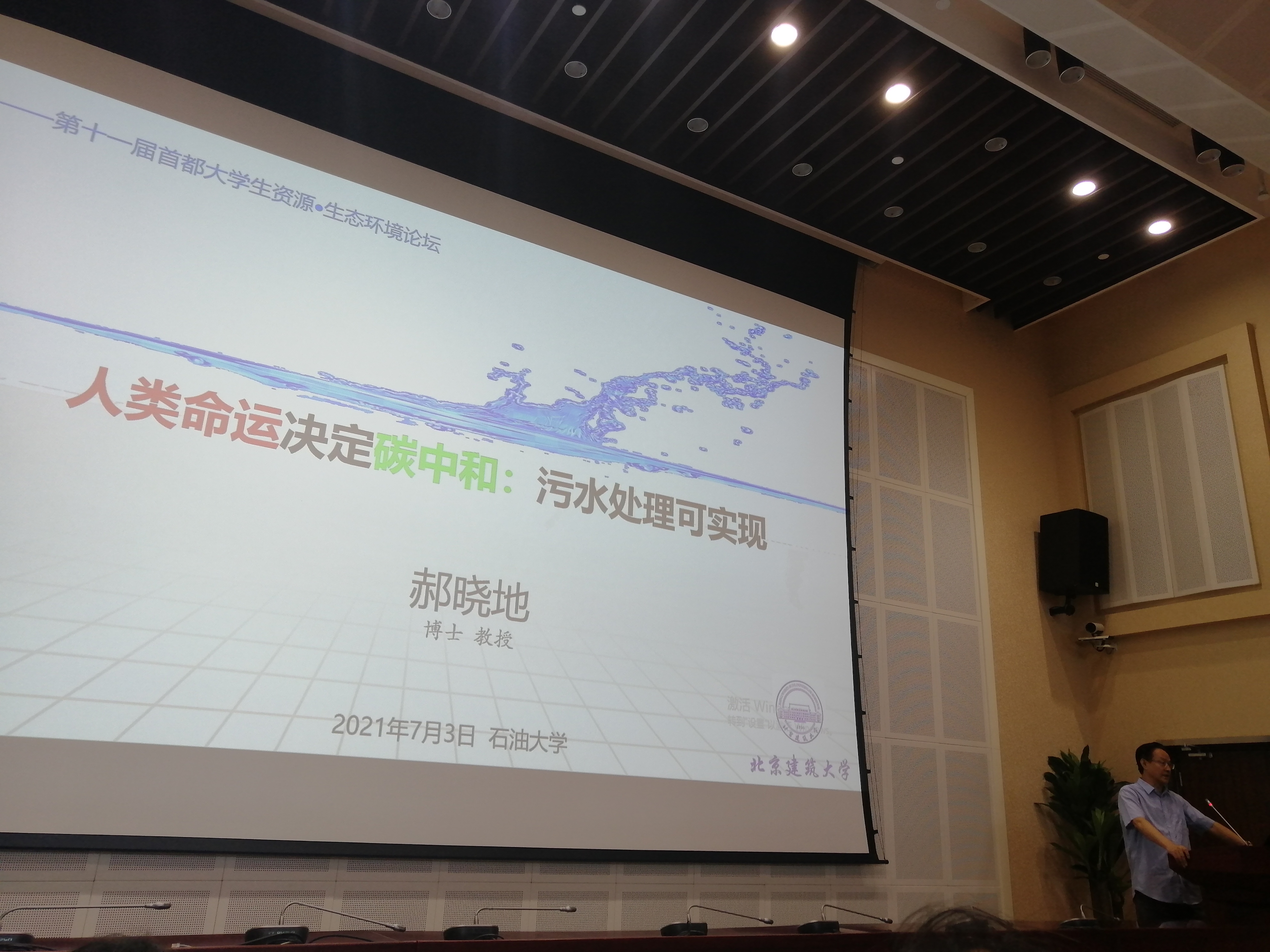 郝晓地教授以《人类命运决定碳中和:污水处理可实现》为题,为论坛带来了精彩的主题报告。