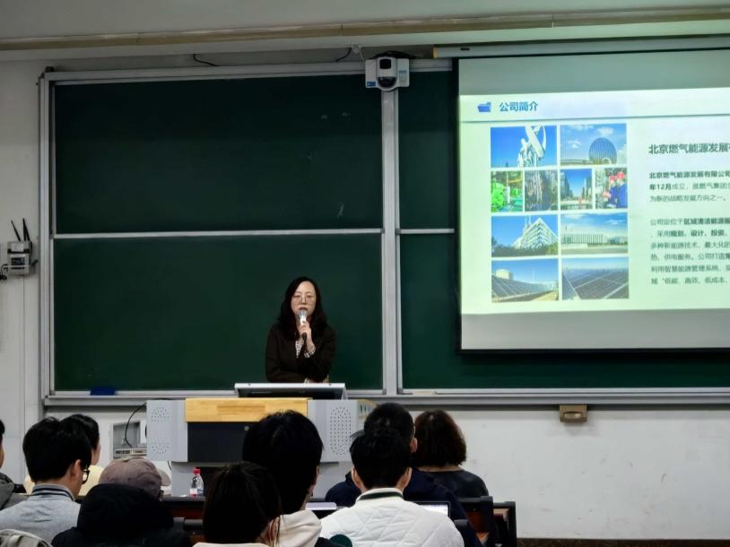 刘蕾副总经理系统介绍了北京燃气集团及能源公司的整体发展情况,内容涵盖业务模式、核心技术与典型案例,并结合公司业务领域,重点剖析了当前能源行业对相关专业人才的能力需求与招聘标准,为同学们提供了清晰的就业导向。