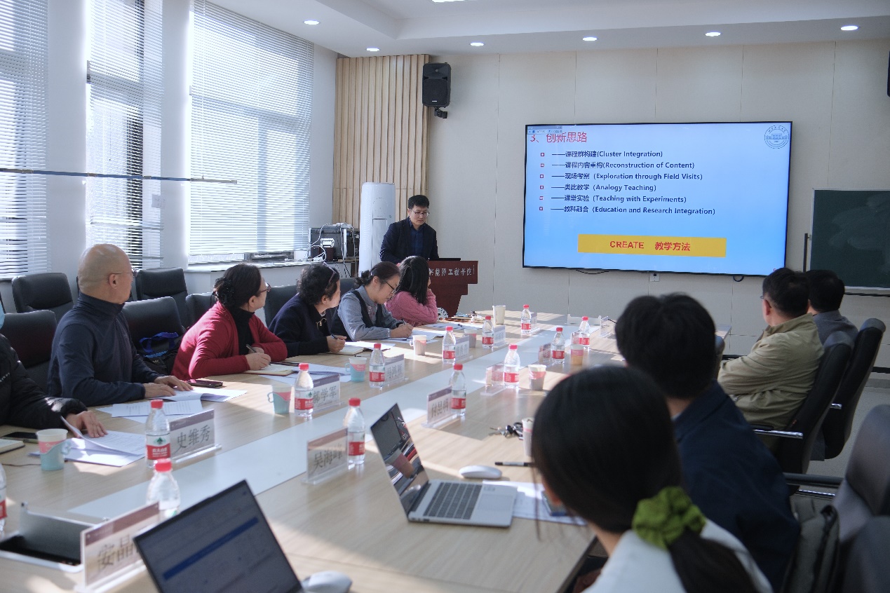 会上,我院三位教师作教学创新设计现场汇报。三位教师聚焦教学实践的“真实问题”,通过对课程内容的重构、教学方法的创新、教学环境的创设、教学评价的改革等,结合教学大纲和教学实践,汇报说明整门课程的设计思路,突出教学改革与创新,展示相关过程性支撑资料。学院部分青年教师现场观摩学习。