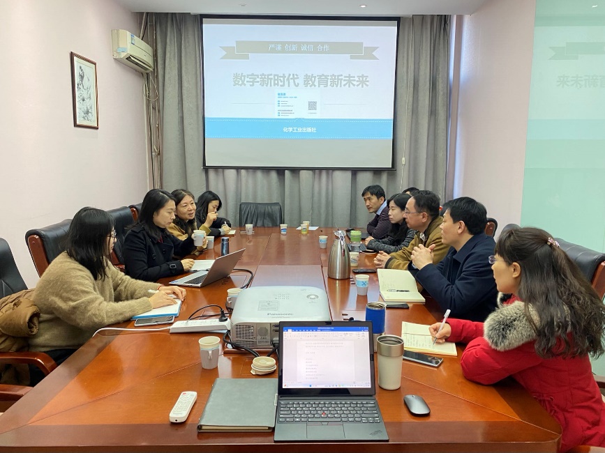会上,赵玉清代表化工出版社,秉承“严谨、创新、诚信、合作”的态度和理念,向与会人员作“教材出版与高等教育‘十四五’国家级规划教材建设”汇报;解读了教育部办公厅2023年11月20日下发的《教育部办公厅关于印发《“十四五”普通高等教育本科国家级规划教材建设实施方案》的通知(教高厅[2023]1号)文件;对“十四五”国家规划教材建设要点、数字化教材出版、党的精神进教材等内容展开介绍。与会双方对各类教材出版事宜进行了研讨,双方表示将坚持以习近平新时代党的二十大精神为引领,加强交流合作,根据我院教育教学实际,将教学研究、学科建设、课程建设、人才培养等教学成果与教材建设相结合,持续推进各类成果及时转化为新形态教材,有效推动教学质量工程建设发展。