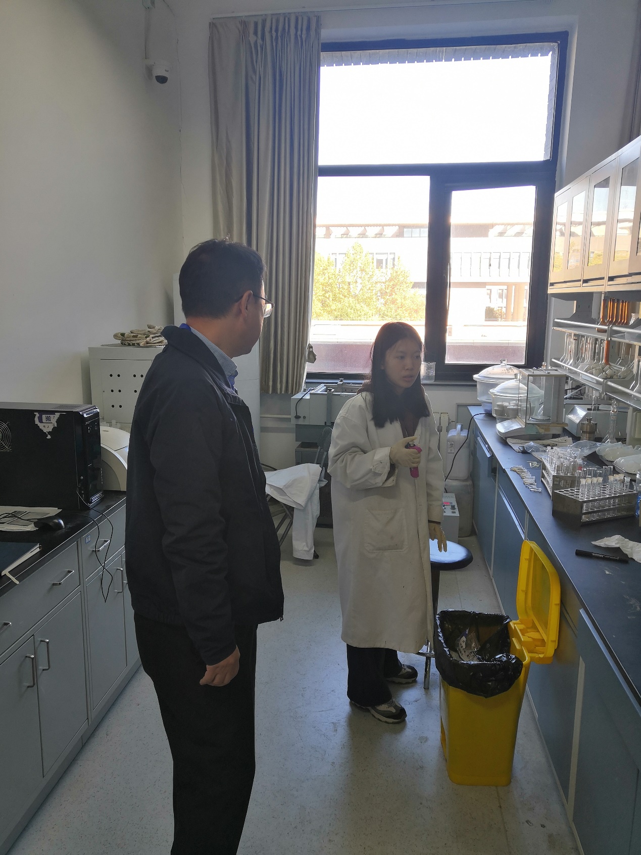 党委书记冯宏岳、实验室专职管理员穆小让等对所辖实验室、研修室进行安全专项检查。重点对实验室的用水用电安全、设备设施管理、危险化学品及气瓶管理、消防应急设备设施状态;研修室的用电安全、暖气片供暖情况以及有无漏水等。对可以及时排除的安全隐患进行现场纠正,做到即知即改、立行立改;对有待进一步解决的安全问题督促限期整改。