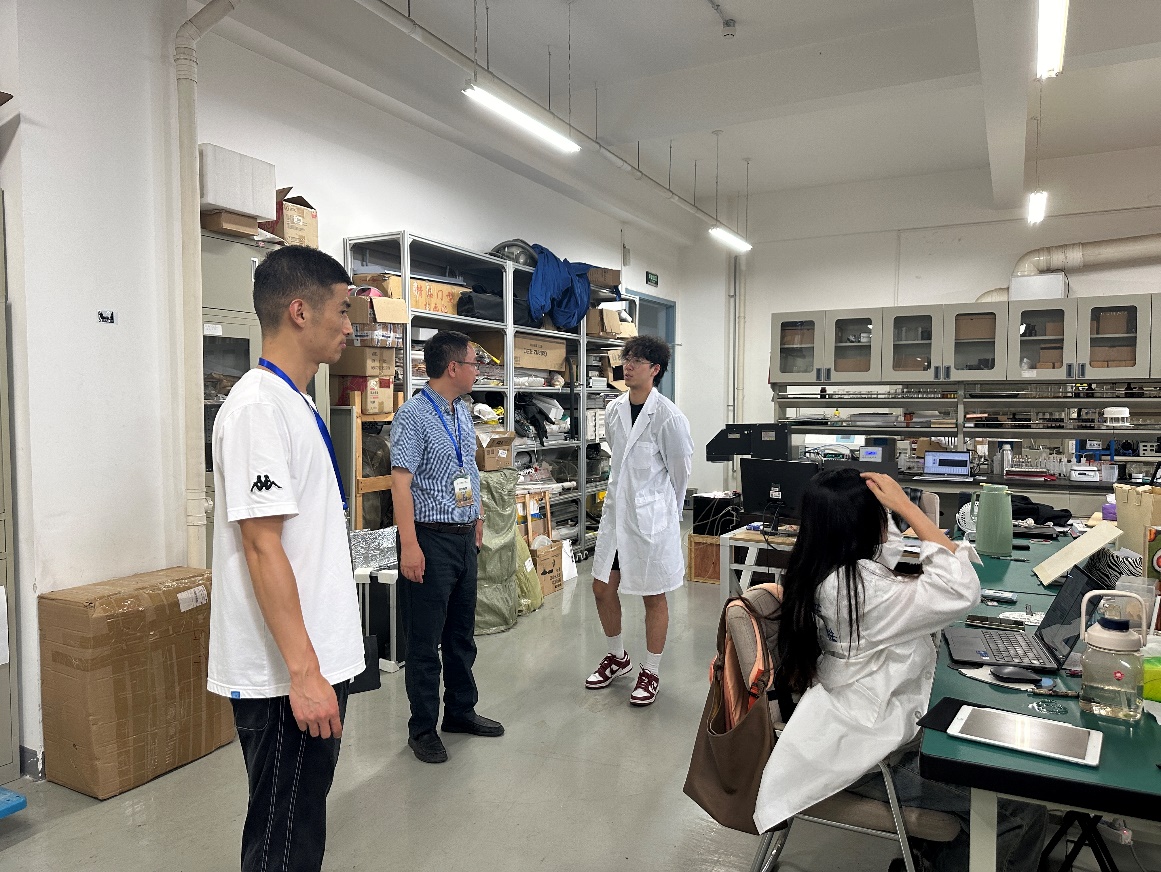 党委书记冯宏岳带队对实验室、研修室进行暑假前的安全专项检查。主要检查内容包括:实验室用电安全,应急喷淋、灭火器等安全设施是否能正常使用,气瓶、危化品管理是否规范,假期开放使用实验室台账是否清晰准确;研修室用电安全及卫生情况等。检查中对可以及时排除的安全隐患进行现场纠正,做到即知即改、立行立改;对有待进一步解决的安全问题督促实验室限期整改。实验室专职管理人员穆小让、辅导员杨琎、实验室管理员李富强等一同检查。