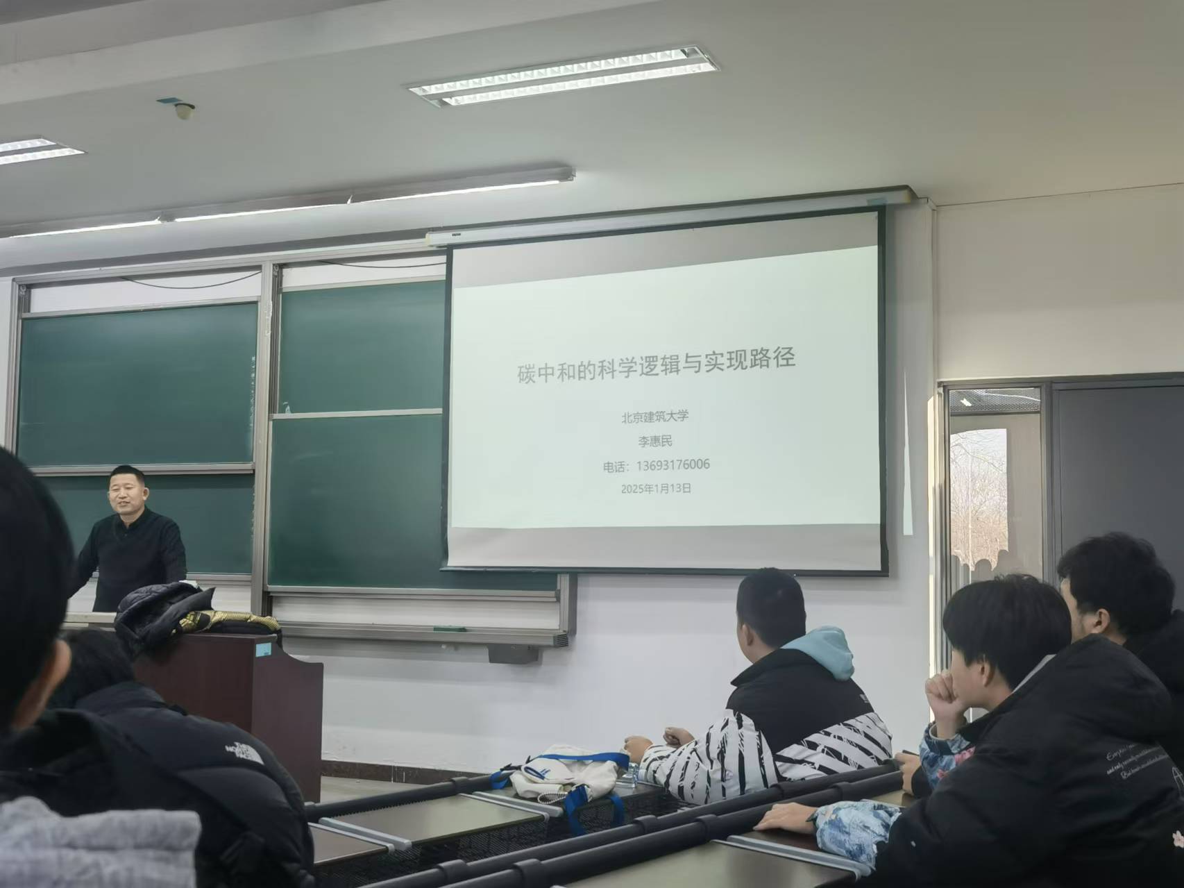 1月13日,李惠民老师为同学们做了《碳中和的科学逻辑与实现路径》报告,从能源结构、碳循环原理等多个角度深入剖析了碳中和的科学逻辑,并提出了实现碳中和的多层面策略。学生们对碳中和的科学逻辑与实现路径有了更为清晰的认识。