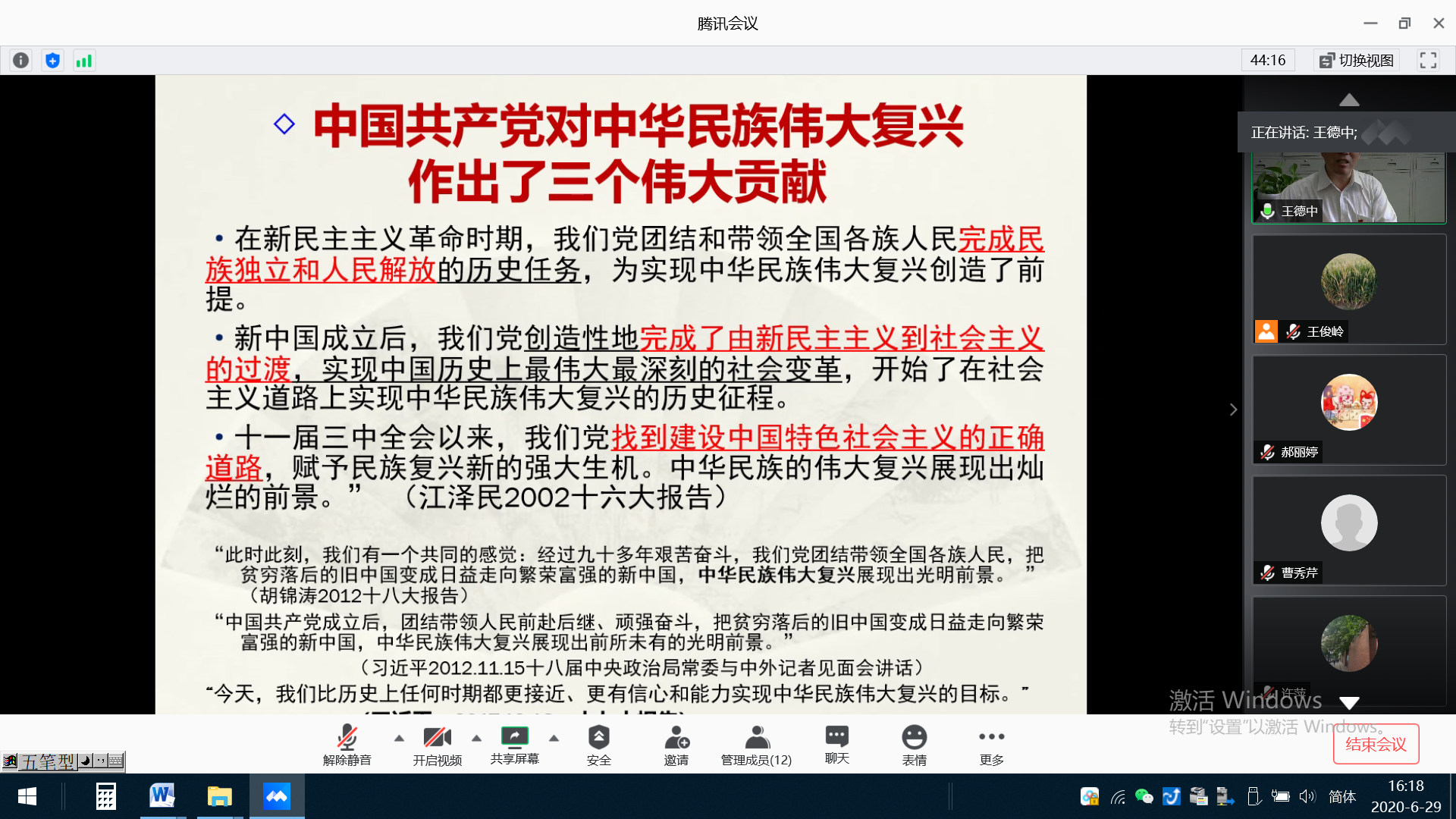 王德中教授是北京市中共党史学会理事,2006年被评为北京市优秀教师,2012年被评为北京教育系统优秀新闻宣传工作者。王教授的党课主要从中国近代史,共产党的党史,中华民族的伟大复兴,中国梦,共产党的投疫理念和精神等方面进行了深入浅出的梳理和讲解,深奥的哲理中穿插风趣幽默的故事,从大国抗疫到中美关系,从传大斗争到伟大思想,给支部党员带来了一次精神盛宴,使支部党员更加坚定了信念,淬炼了党性,以更加饱满的热情投入到抗疫中,投入到教学科研工作中。