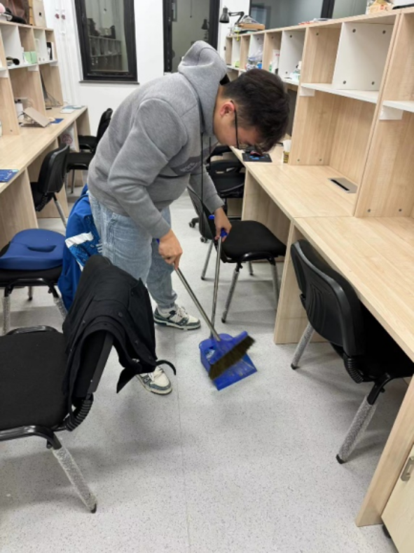 以各班团、党支部组织为枢纽,围绕学生宿舍、实验室、研修室等场所,组织开展卫生大扫除等学生集体劳动,让劳动教育全面渗透到大学生活中去。
