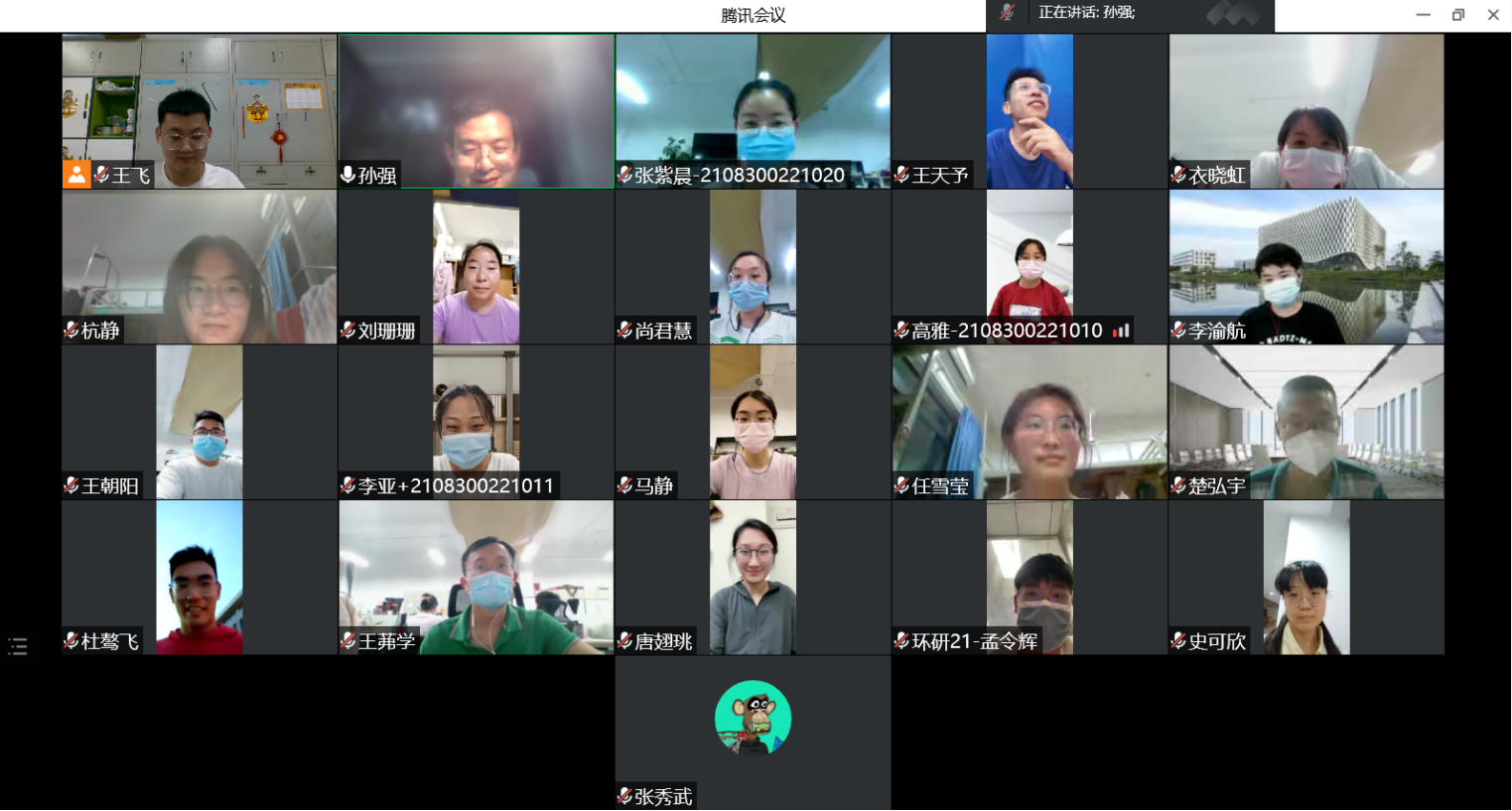 会上,孙强老师向参会师生就目前新冠肺炎疫情防控形势、新时代青年的责任与担当进行了交流研讨,并结合近期发生的涉疫案例对当下校园封闭管理、核酸检测等校园防疫政策的必要性和重要性进行了解答。他强调,广大师生要统一思想,坚决贯彻“动态清零”总方针,积极配合学校防疫政策要求,按照属地和学校要求完成核酸检测、近期不订外卖、减少网购、每天健康打卡。全体党员、团员和学生骨干要以身作则,积极发挥先锋模范带头作用。此外,他还与学生就如何疏导疫情防控带来的心理焦虑、科研学习、就业问题等进行了沟通,确保在校生的学习、生活有序进展。