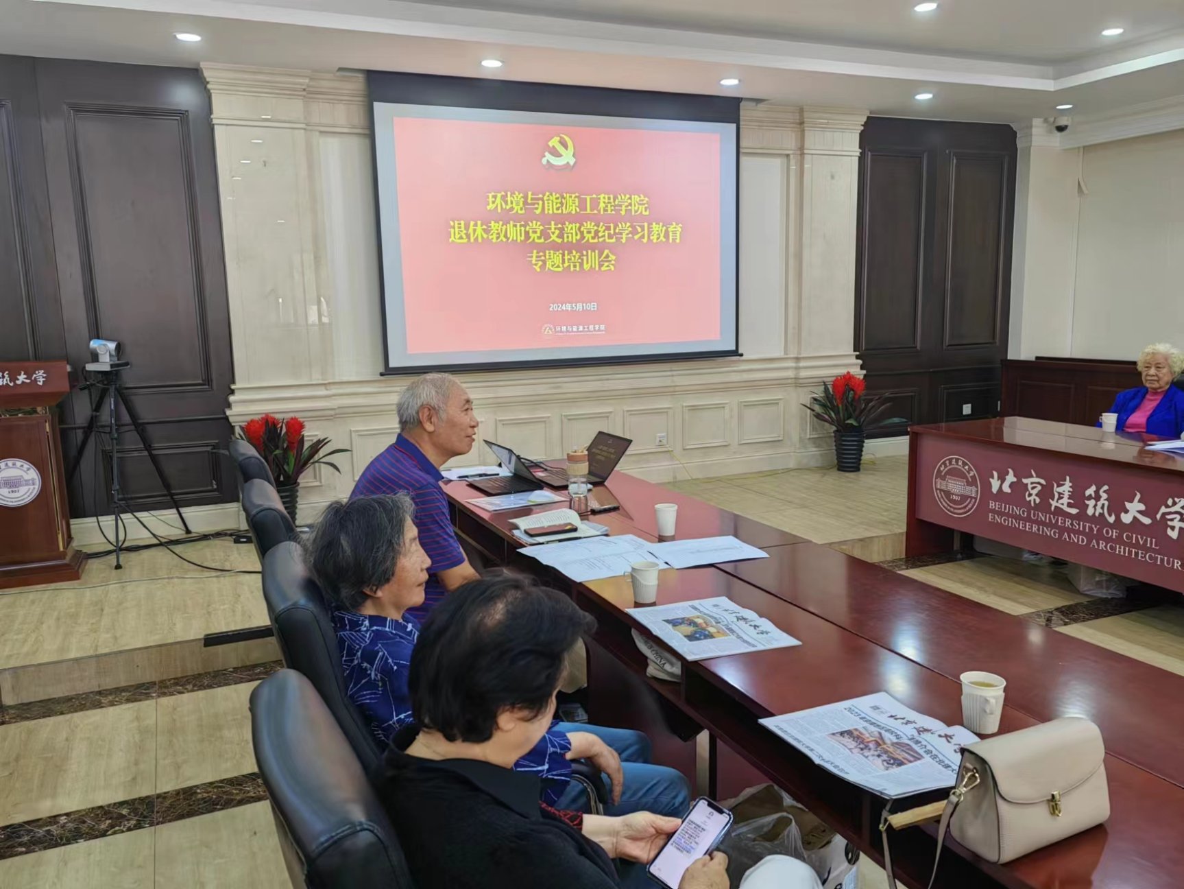 退休教师党支部在西城校区第八会议室召开党纪学习教育专题培训会。会议由学院党委书记冯宏岳主持。