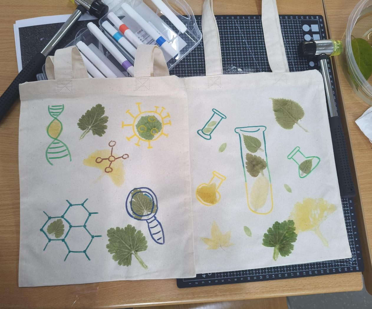 活动尾声的作品展示环节,一幅幅独一无二的拓印帆布包挂满展示墙,每一件都承载着参与者对自然的理解与创意。