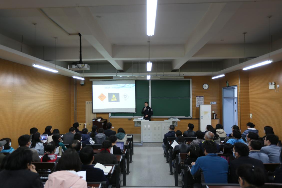 举办实验室安全教育培训会。北京市公安局治安管理总队危险物品管理支队中队长谷宝峰,国资处处长刘蔚、副处长焦驰宇,保卫处相关人员,低端影视